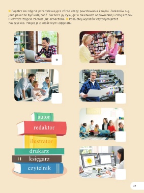 Popatrz na zdjęcia przedstawiające różne etapy powstawania książki. Zastanów się,
