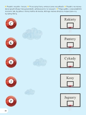 Popatrz na piłki i kosze. Przeczytaj litery umieszczone na piłkach. Popatrz na nazwy