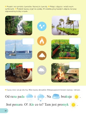 Czytaj tekst lub go słuchaj. Mów nazwy obrazków. Wskazuj palcem kolejne wyrazy i obrazki.