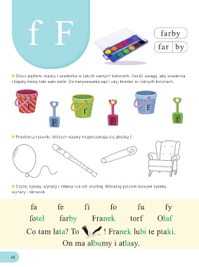Pokoloruj rysunki, których nazwy rozpoczynają się głoską f.