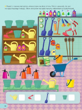 Popatrz i nazwij narzędzia umieszczone na dole strony. Policz i powiedz, ile jest narzędzi każdego rodzaju. Obok obrazków narzędzi narysuj odpowiednią liczbę kropek. 44