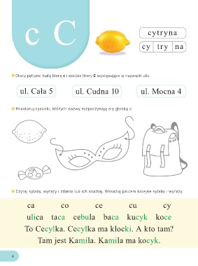 Pokoloruj rysunki, których nazwy rozpoczynają się głoską c.