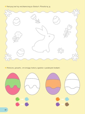 Narysuj kartkę wielkanocną po śladach. Pokoloruj ją. Pokoloruj pisanki, zmieniając kolory zgodnie z podanymi kodami. 60