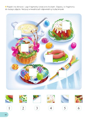 Popatrz na obrazek i jego fragmenty oznaczone liczbami. Dopasuj te fragmenty do dużego zdjęcia. Narysuj w kwadratach odpowiednią liczbę kropek. 1 2 3 4 5 6 62