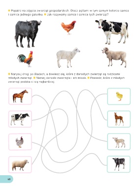 Popatrz na zdjęcia zwierząt gospodarskich. Otocz pętlami w tym samym kolorze samce