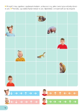 Przejdź trasy zgodnie z podanymi kodami, a dowiesz się, jakie zwierzęta widziały dzieci w zoo. Powiedz, czy byłeś/ byłaś kiedyś w zoo. Opowiedz o wrażeniach po tej wizycie. 76
