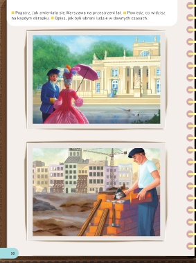Popatrz, jak zmieniała się Warszawa na przestrzeni lat. Powiedz, co widzisz na każdym obrazku. Opisz, jak byli ubrani ludzie w dawnych czasach. 10