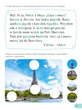 Popatrz na pocztówkę z Paryża. Połącz brakujące fragmenty z odpowiednimi