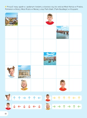 Przejdź trasy zgodnie z podanymi kodami, a dowiesz się, kto widział Most Karola w Pradze, Partenon w Grecji, Most Rialto w Wenecji oraz Park Güell (Park Gaudiego) w Hiszpanii. 22
