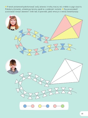 Franek postanowił pokolorować swój latawiec trochę inaczej niż zrobiła to jego siostra.