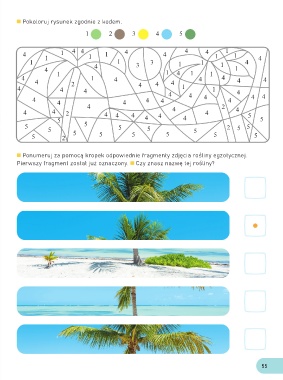 Ponumeruj za pomocą kropek odpowiednie fragmenty zdjęcia rośliny egzotycznej.