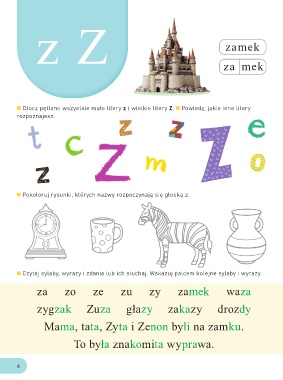 Pokoloruj rysunki, których nazwy rozpoczynają się głoską z.