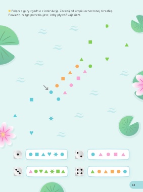 Połącz figury zgodnie z instrukcją. Zacznij od kropki oznaczonej strzałką. Powiedz, czego potrzebujesz, żeby pływać kajakiem. 65