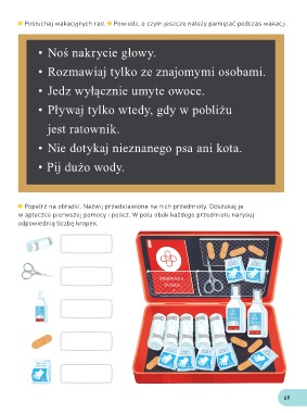 Posłuchaj wakacyjnych rad. Powiedz, o czym jeszcze należy pamiętać podczas wakacji.
