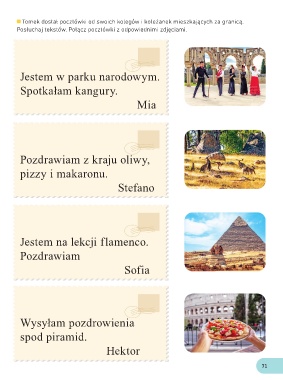 Posłuchaj tekstów. Połącz pocztówki z odpowiednimi zdjęciami.