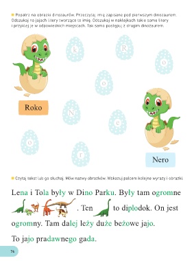 Popatrz na obrazki dinozaurów. Przeczytaj imię zapisane pod pierwszym dinozaurem.