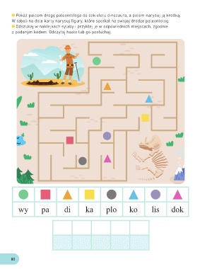 Pokaż palcem drogę paleontologa do szkieletu dinozaura, a potem narysuj ją kredką.