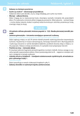 • Utrwalenie refrenu piosenki Jesienna pogoda (s. 122). Nauka pierwszej zwrotki pio-