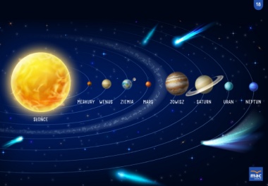 18 MERKURY WENUS ZIEMIA MARS JOWISZ SATURN URAN NEPTUN SŁOŃCE