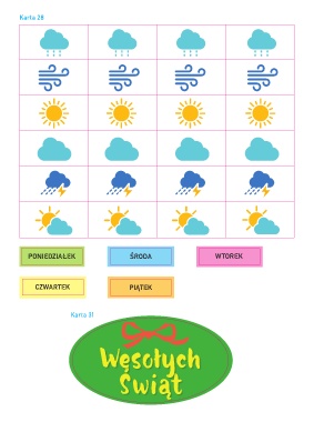 Karta 28 PONIEDZIAŁEK ŚRODA WTOREK CZWARTEK PIĄTEK Karta 31