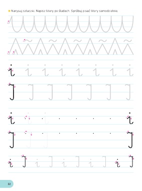 Narysuj szlaczki. Napisz litery po śladach. Spróbuj pisać litery samodzielnie. i i i i i i i i I I I I I I I i i i i I I I I i I i I i I i I i I 22