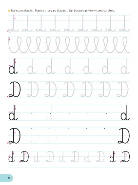 Narysuj szlaczki. Napisz litery po śladach. Spróbuj pisać litery samodzielnie. d d d d d d d D D D D D D D d d d d D D D D d D d D d D d D d D 26