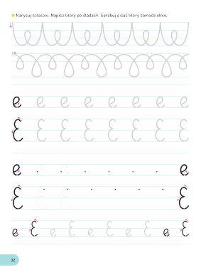 Narysuj szlaczki. Napisz litery po śladach. Spróbuj pisać litery samodzielnie. e e e e e e e e E E E E E E E E e e e e E E E E e E e E e E e E e E 32