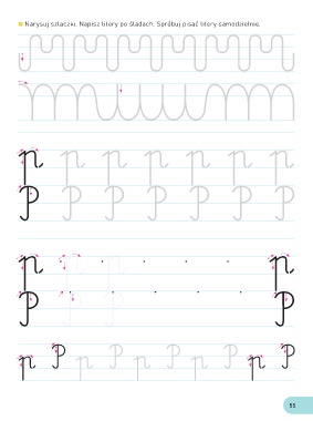Narysuj szlaczki. Napisz litery po śladach. Spróbuj pisać litery samodzielnie. p p p p p p p P P P P P P P p p p p P P P P p P p P p P p P p P 55
