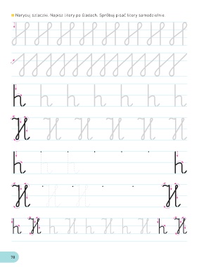 Narysuj szlaczki. Napisz litery po śladach. Spróbuj pisać litery samodzielnie. h h h h h h h H H H H H H h h h h H H H H h H h H h H h H h H 78