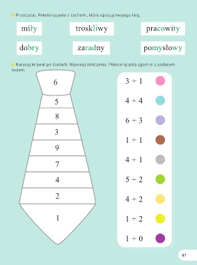 Narysuj krawat po śladach. Wykonaj obliczenia. Pokoloruj pola zgodnie z podanym