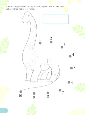 Połącz kolejno kropki. Zacznij od cyfry 1. Wymyśl imię dla dinozaura. Jeśli potrafisz, napisz je w ramce. 1 2 3 4 5 6 7 10 9 8 96