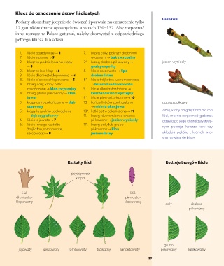 12 gatunków drzew opisanych na stronach 130–132. Aby rozpoznać