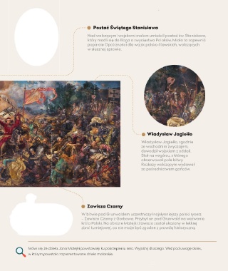 Nad walczącymi wojskami malarz umieścił postać św. Stanisława,