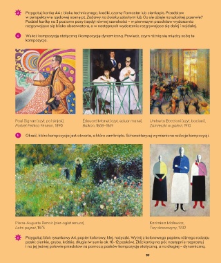 Paul Signac [czyt. pol sinjak], Édouard Manet [czyt. eduar mane], Umberto Boccioni [czyt. bocioni],