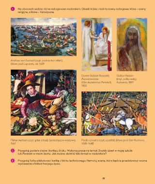 4 Na obrazach widzisz różne rodzaje scen malarskich. Określ, które z nich to sceny rodzajowe, które – sceny