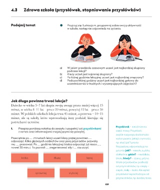 minut, ale są szkoły, które wprowadzają inny podział, kierując się