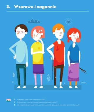 3. Wzorowo i nagannie 1. Która para dzieci może prezentować wzór? 2. Kiedy wzorem może być niewybrana przez ciebie para dzieci? 3. Jak mogłaby się potoczyć krótka rozmowa na temat grzeczności pomiędzy dziećmi z ilustracji?