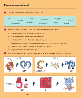 2 Przeczytaj zdania i je dokończ – podaj nazwy określonych właściwości papieru.