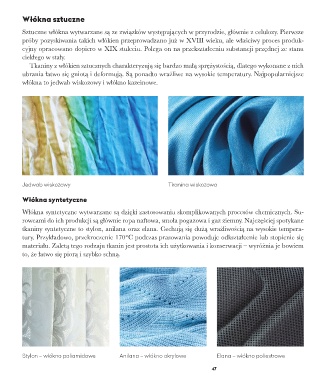 tkaniny syntetyczne to stylon, anilana oraz elana. Cechują się dużą wrażliwością na wysokie tempera-