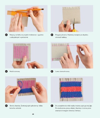 2 Narysuj na tekturze projekt minikrosna – zgodnie 3 Przygotuj krosno. Wykonaj nacięcia po obydwu