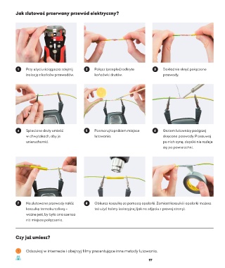 1   Przy użyciu ściągacza zdejmij    2   Połącz (przepleć) odkryte        3   Dokładnie skręć połączone