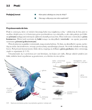 3.19 Budowa zewnętrzna ptaka na przykładzie gołębia i rodzaje piór