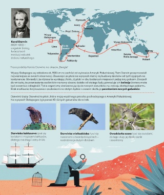 najważniejsze ze swoich obserwacji. Zauważył, że ptaki na wyspach różnią się budową dziobów od tych żyjących na