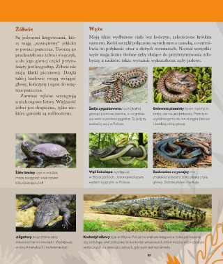 przekształcone żebra i obojczyk, węże mają liczne drobne zęby służące do przytrzymywania zdo-