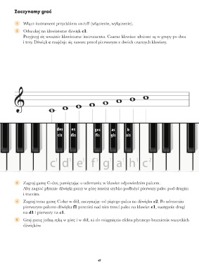 5 Graj gamę jedną ręką w górę i w dół, aż do osiągnięcia efektu płynnego brzmienia wszystkich
