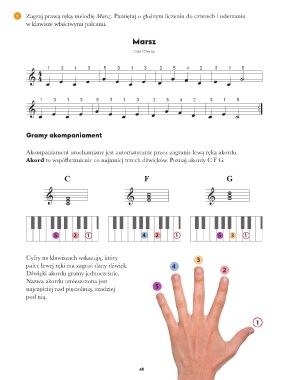 1 Zagraj prawą ręką melodię Marsz. Pamiętaj o głośnym liczeniu do czterech i uderzaniu