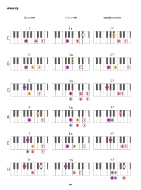 Akordy durowe molowe septymowe C Cm C7 1 3 C 5 2 1 5 2 2 1 G Gm G7 3 G 5 3 1 5 1 5 3 1 D Dm D7 5 5 D 3 1 5 2 1 2 1 4 2 1 A Am A7 3 2 A 5 1 5 3 1 5 4 4 2 1 E Em E7 5 5 E 3 1 5 3 1 2 1 4 2 1 H Hm H7 5 1 5 1 H 2 2 1 4 3 5 4 2 50 51