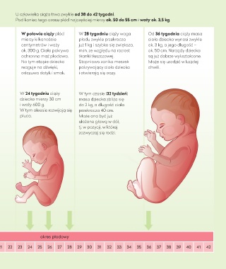 Pod koniec tego czasu płód najczęściej mierzy ok. 50 do 55 cm i waży ok. 3,5 kg.